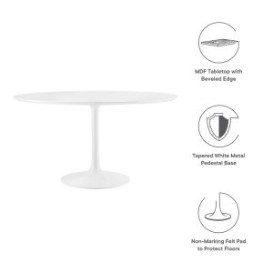 Let modern inspiration flow while gathered around the Lippa 54" Round Dining Table. Perfect for entertaining family and friends or everyday dining, this pedestal table comfortably seats four. Its round tabletop is crafted with MDF with a high gloss finish and beveled edge for a contemporary yet timeless design. Embodying an iconic mid-century silhouette, this pedestal dining table floats on a sleek tapered metal pedestal base with a chip-resistant lacquered finish. Includes non-marking felt pad to protect flooring. Assembly required. Set Includes: One - 54" Lippa Dining Table With Wood Top