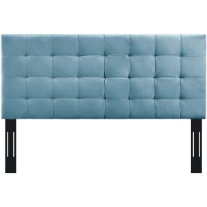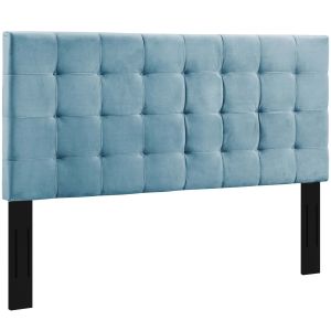 Enjoy simple elegance with the square-patterned design of Paisley. Featuring timeless biscuit tufting, Paisley updates the guest bedroom or master suite with charming appeal. A stylish full or queen headboard, Paisley is made of soft, stain resistant performance velvet covering a durable fiberboard and plywood frame with dense foam padding. Solidly constructed with extra wide black-stained wood post legs that fit either full or queen bed frames, choose from three mounting positions with this tall, padded headboard that ranges from 46 - 54 inches in height. The Paisley full or queen headboard is a lavish addition that offers quality support while reclining and relaxing. Set Includes: One - Paisley Tufted Full / Queen Headboard