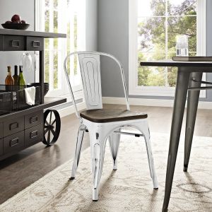 Privy Gold Stainless Steel Upholstered Fabric Dining Accent Chair, Gold White